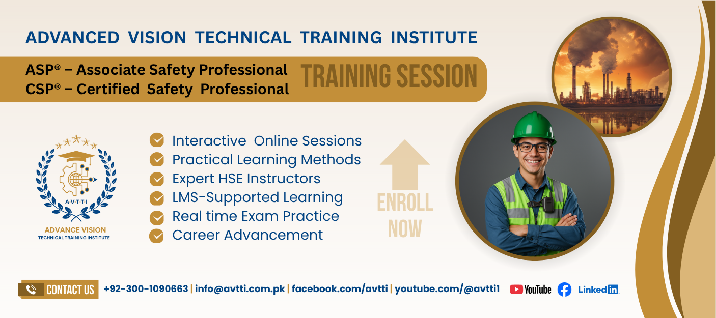 From ASP®/CSP® exam preparation to corporate HSE programs and industrial interview readiness, AVTTI transforms training into measurable outcomes improved competence, certification success, and stronger employability. Our approach blends global standards with practical, industry-ready skills, guided by expert trainer with international certifications and hands-on experience.